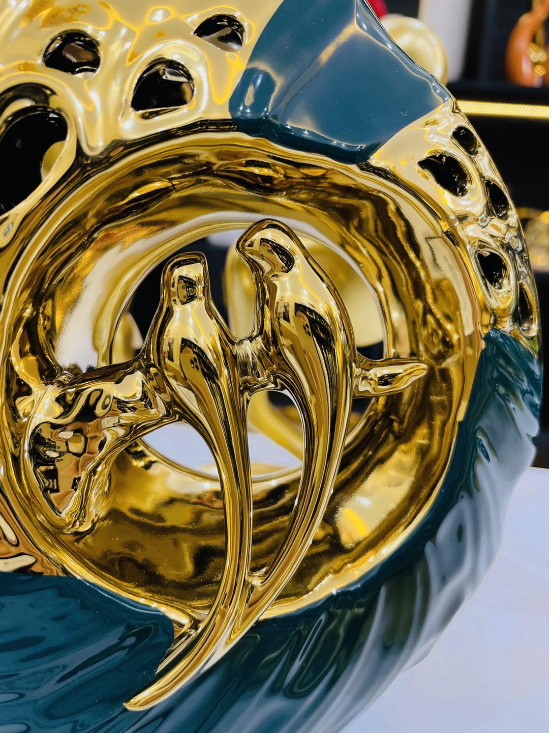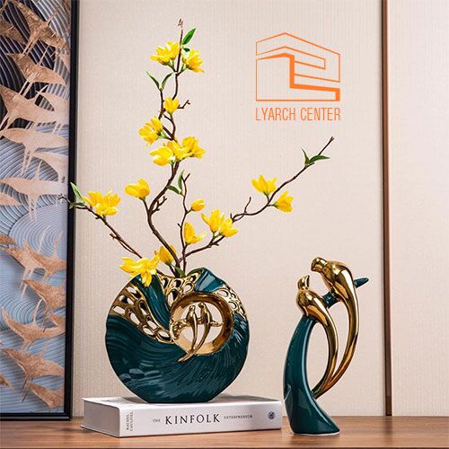Bình hoa sứ xanh đôi chim